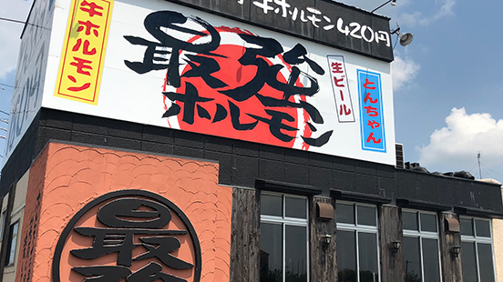 当店は愛西市稲葉町にございます。愛西市役所南東に位置し県道105号線沿いにあります。大きな「最強ホルモン」の看板が目印です。東名阪弥富インターから車で約5分程度でご来店いただけます。皆様のご来店お待ちしております。